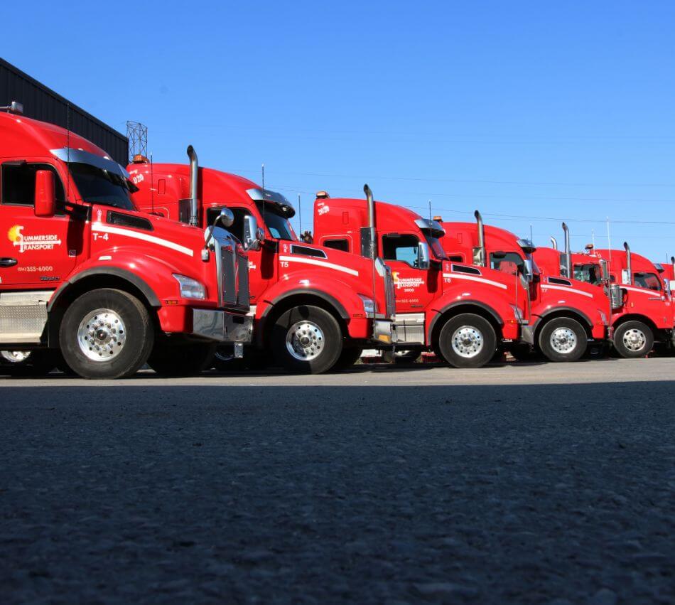 Remorques surbaissées avec essieux coulissants, idéales pour le chargement au sol, également munies de cylindres hydrauliques pour un nivellement précis au quai de chargement.